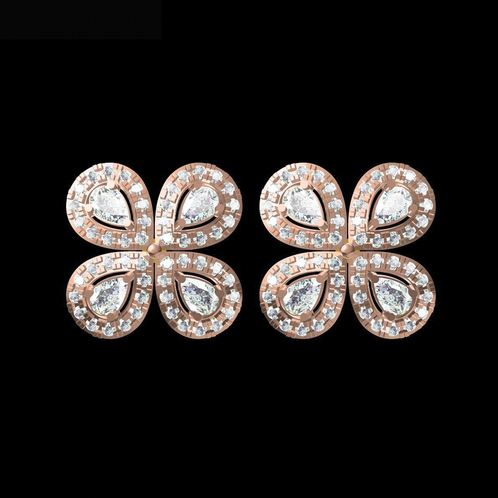 The Anaya Bloom Earrings are inspired by delicate petals in full harmony. Crafted in warm rose gold, each earring features four pear-shaped diamond centres framed by a halo of fine diamonds, creating a soft floral silhouette with radiant depth. Designed to sit beautifully on the ear, these earrings offer a refined sparkle that transitions seamlessly from day elegance to evening charm.
