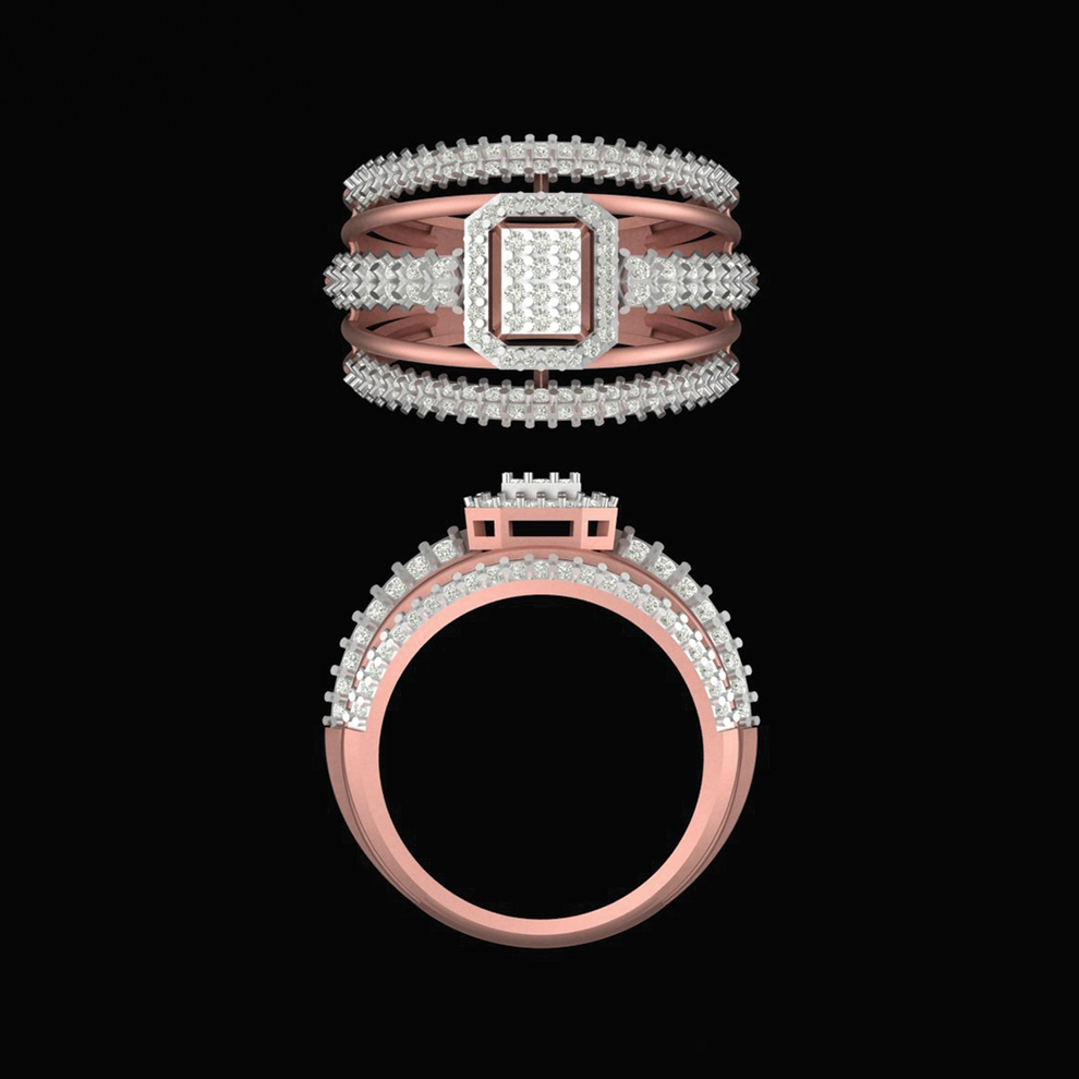 The Sthira Ring is a statement of strength wrapped in elegance. Defined by its bold rectangular centre and layered diamond-set bands, this design reflects stability, confidence, and refined power. Every line is intentional — every detail crafted to stand firm yet shine gracefully.
